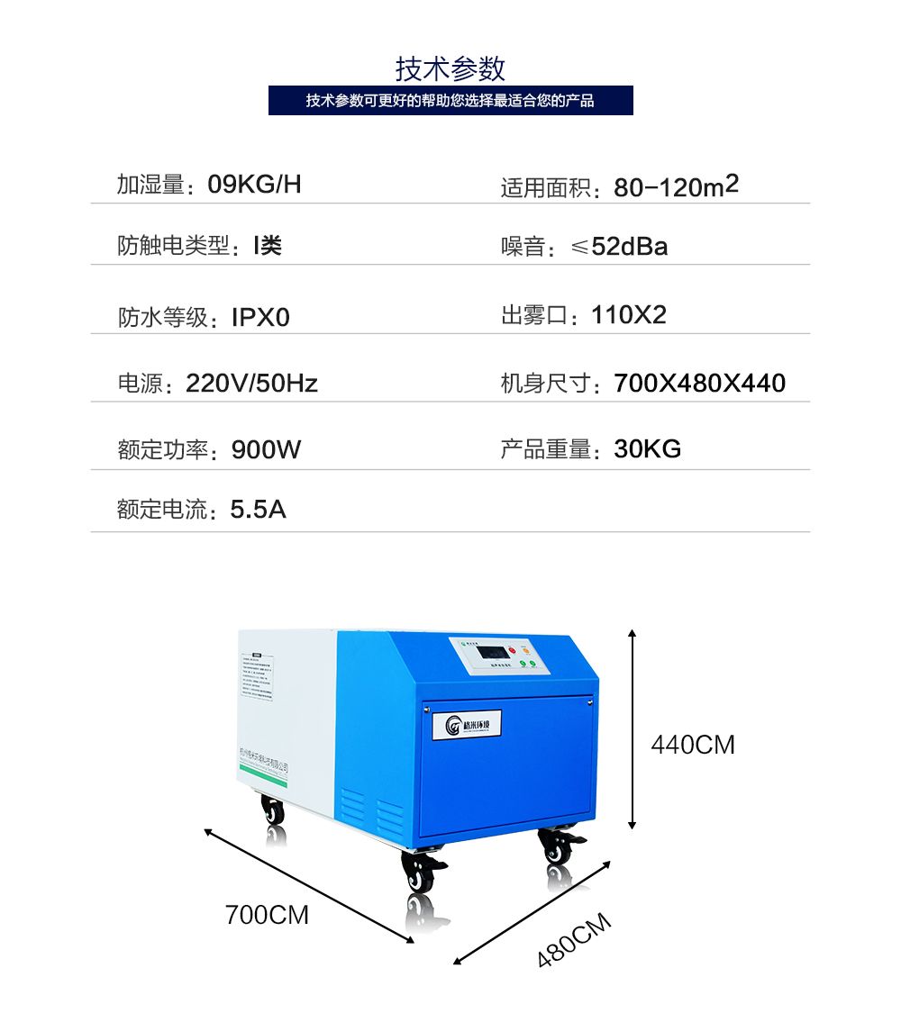 3.加湿机的使用范围广范:纺织,造纸,机房,电子车间,印刷车间,实验室,